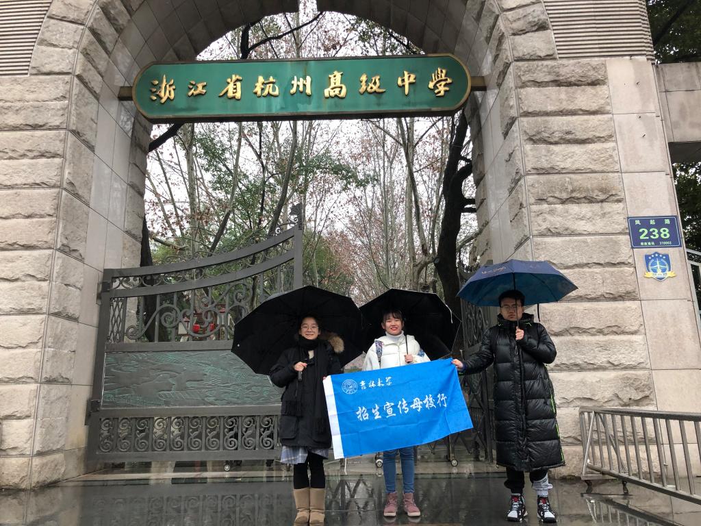 吉大天堂团成员徐奕昕、陈荧超、钱晨庐于2020年1月15日12点整至13点整、14点45分至14点51分、15点09分至15点15分三个时间段,分别在浙江省杭州高级中学的报告厅、阅览室、教室进行万象城体育awcsport宣传活动。12点整到13点整,三位成员于学校教室铺设摊位、分发宣传册,为前来咨询的学弟学妹介绍相关政策及信息。三位成员于分别在学校的报告厅、阅览室根据ppt和相关信息向高三学生们介绍了万象城体育awcsport的环境、政策、就业、升学情况等相关内容,并留下了招生信息和地址。