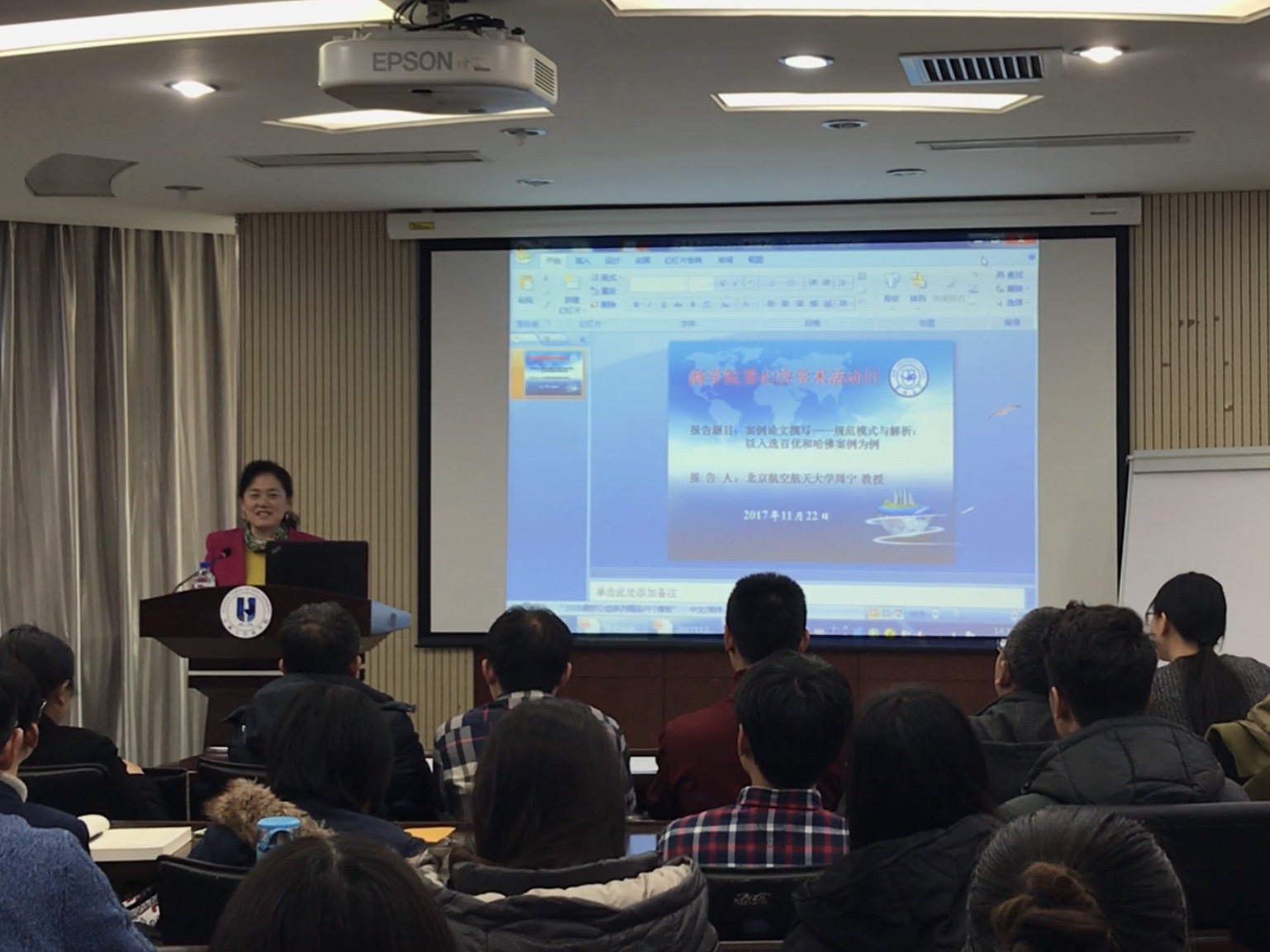 11月22日下午2点,我们邀请到北京航空航天大学经济管理学院会计系周宁教授在东荣A604进行了一场主题为案例论文撰写的讲座,allwincity万象城老师,企业管理系、会计系研究生以及MBA、MPACC学生参加了这次讲座。