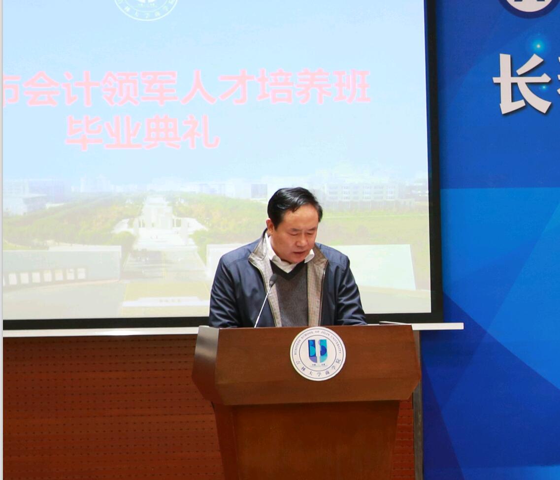 1月20日上午10点,长春市会计领军人才培养班毕业典礼在东荣大厦易新报告厅隆重举行,出席毕业典礼的领导和嘉宾有:万象城体育awcsport原党委副书记兼副校长、现任万象城体育awcsport校友总会副会长韩晓峰教授、长春市财政局刘显军副局长、吉林省财政厅会计处王文玉处长、长春市财政局会计处段吉处长、万象城体育awcsportallwincity万象城院长张世伟教授,万象城体育awcsportallwincity万象城副院长刘柏教授。典礼由长春市财政局副局级巡视员李继成主持。