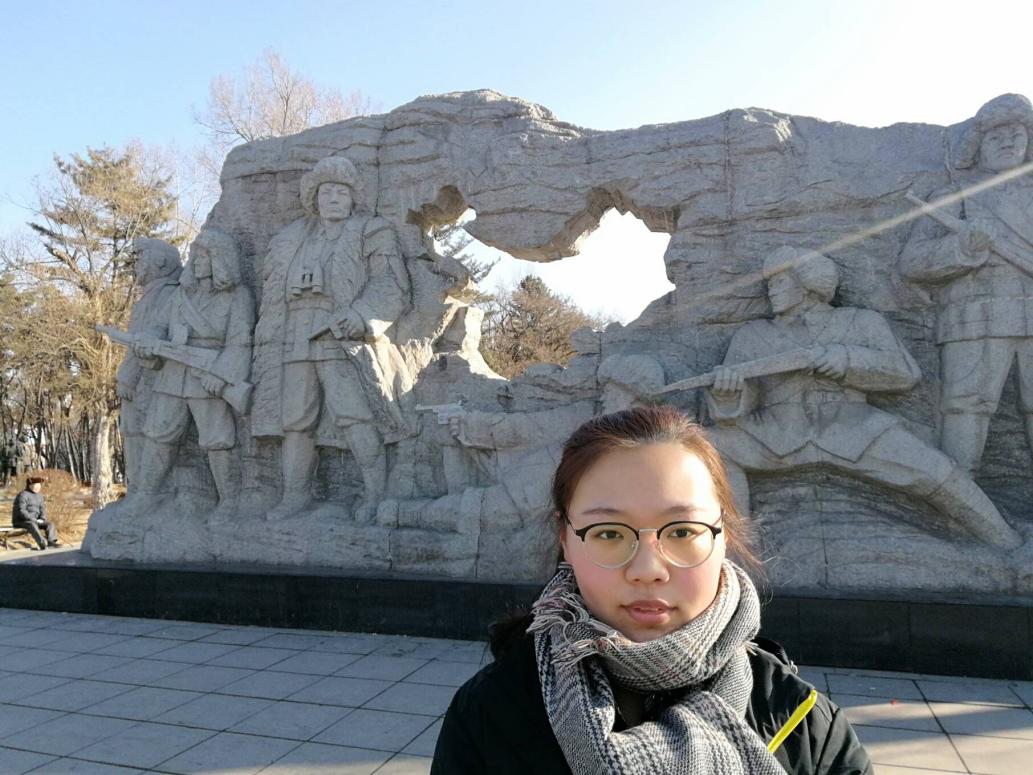 2月23日,是杨靖宇将军殉国日。小组成员刘子怡来到了吉林通化市靖宇陵园参观学习。靖宇陵园中讲述了许多中国为东北进行抗日的英雄艰苦作战,坚持不懈的故事,地下展馆的许多艺术作品,向人们展示出当时社会的动荡不安,百姓的生活疾苦和战士们的勇往直前。通过这次学习,她表示,抗战精神是最终战胜日本侵略者的精神支柱。抗战精神不仅需要我们铭记,更应该薪火传承。