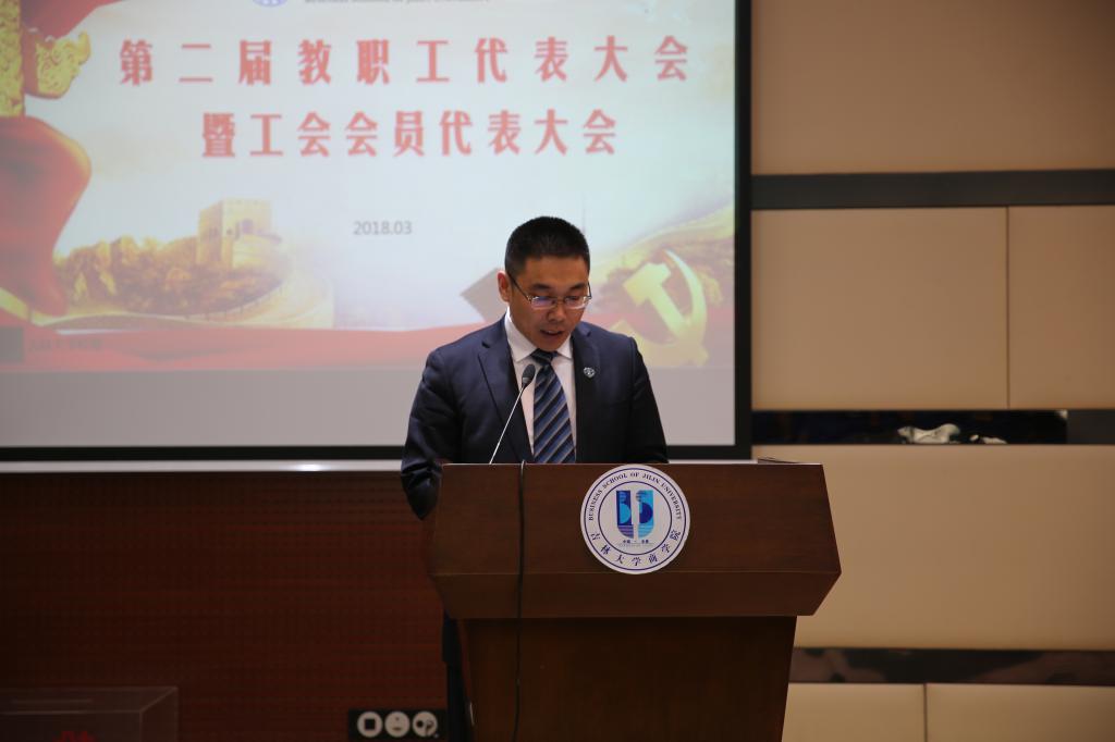 接着,工会主席梁志平同志作了题为《凝心聚力,为学院深化改革与内涵式发展服务》的工会工作报告,工会副主席赵晓波同志宣读了《代表提案征集立案情况报告》。