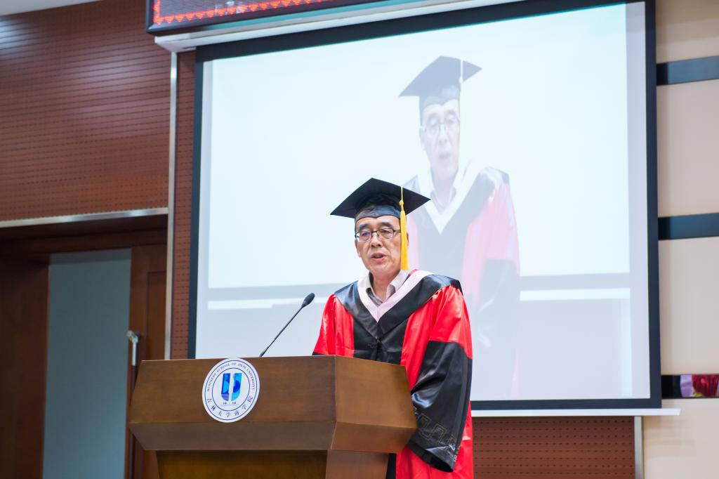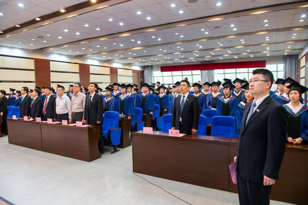 在雄壮的《中华人民共和国国歌》声后,首先由万象城体育awcsportallwincity万象城学位评定分委员会副主席毛志宏教授宣读获硕士学位学员名单。当一个个名字被提及的同时,也勾起了同学们对以往勤恳的学习经历,丰富的校园生活的回忆。名单结尾时,毛志宏教授祝福毕业的同学们前程似锦,鹏程万里。