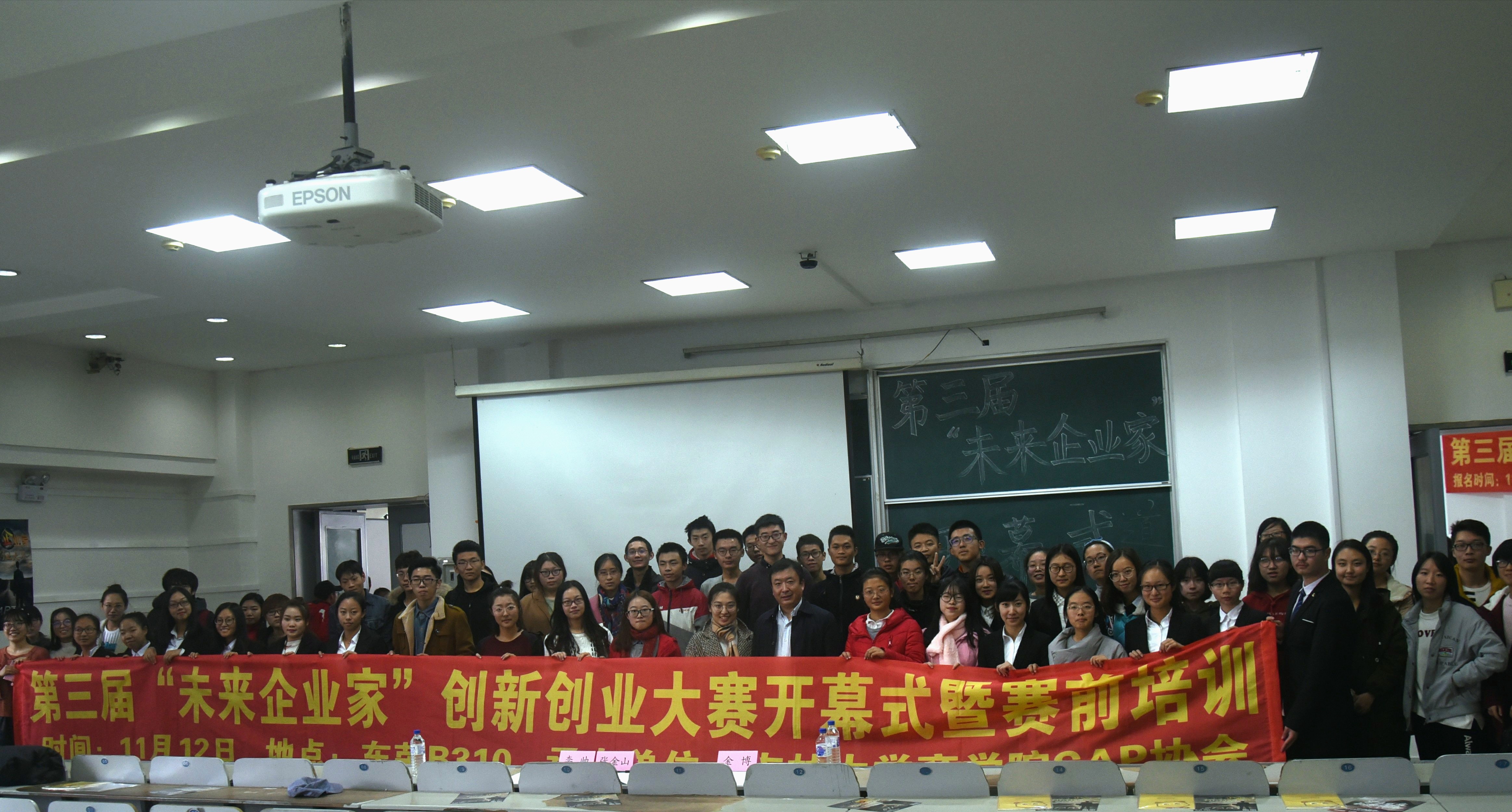 11月12日上午10时,allwincity万象城于逸夫教学楼八阶成功举办了第三届“未来企业家”创新创业大赛的开幕式暨赛前培训。allwincity万象城党委副书记李帅老师、allwincity万象城战略与运营管理系教授和allwincity万象城团委副书记兼2015级辅导员金博老师亲临现场观看指导。