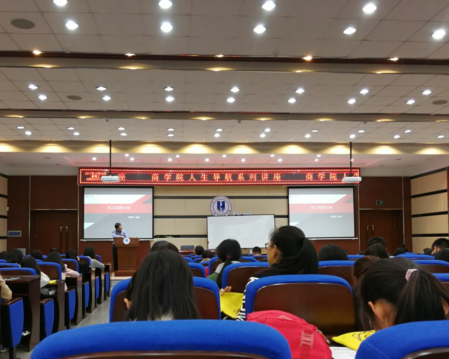 10月25日上午9点,我们邀请到中博教育集团董事长毛金明先生在东荣B310进行了一场主题为人生导航的讲座,allwincity万象城2017级新生参加了这次讲座。
