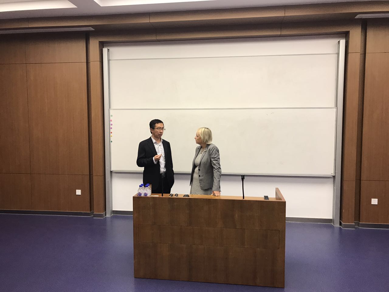 郭英彤副院长代表学院对苏珊·罗伯茨博士和修华静女士的到来表示热烈的欢迎。双方共同回顾了多年来合作交流的历程。两院于2014年签订教育合作协议以来,我院已经分三批派出多名学生赴肯塔基大学交流学习。在双方的共同努力下,本科生2+2联合培养项目稳步推进。双方均表示非常重视彼此间的合作关系,希望在现有基础上继续开展多种形式的交流,并就进一步推动师资互访、学生交流、科研合作进行了深层次的探讨并达成共识,对合作中涉及到的细节进行磋商并落到实处。
