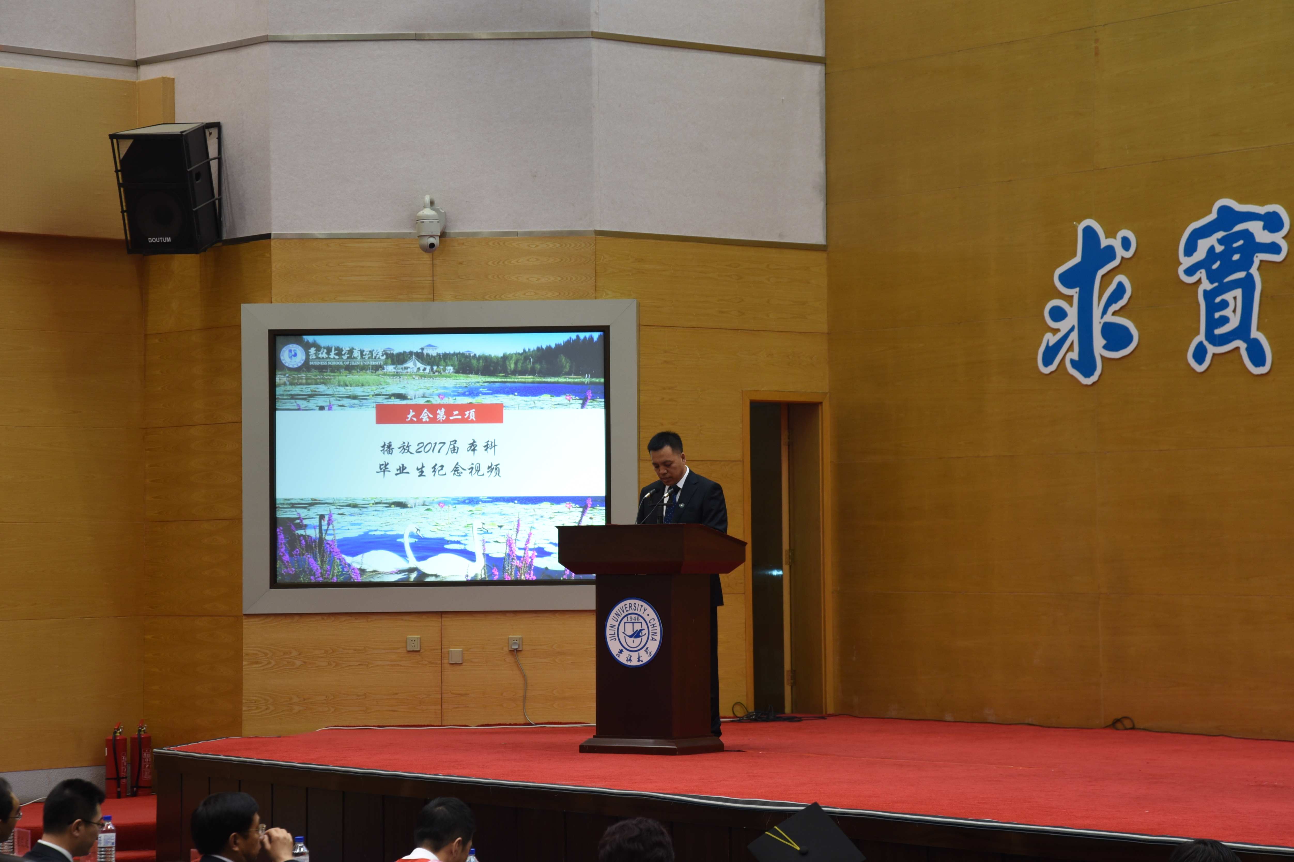 国歌奏毕,现场播放了属于2017届本科毕业生的纪念视频。视频里,有他们独一无二的二十几年,有他们在吉大校园的美好回忆,还有对自己未来的无限憧憬,一路走来,虽跌跌撞撞,一点一滴却都是最好的安排。