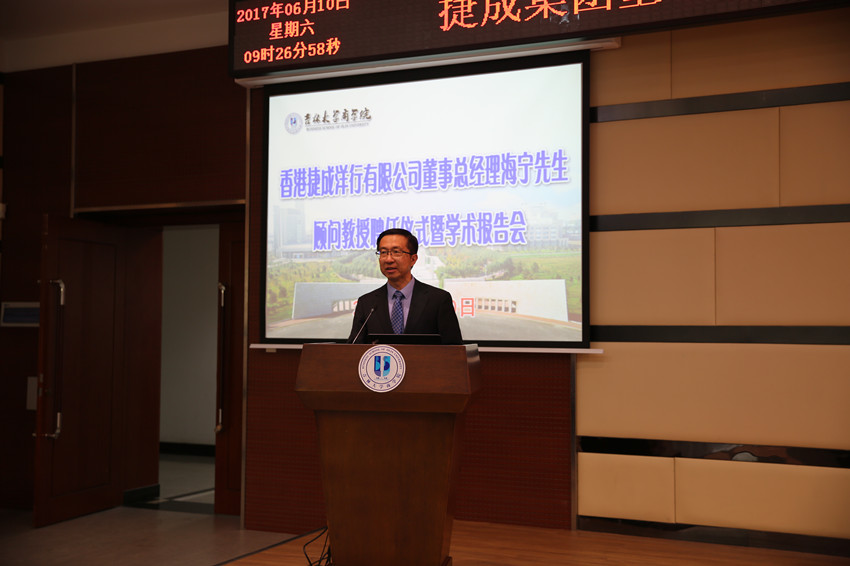 首先,郭英彤副院长代表学院向远道而来的海宁先生表示热烈的欢迎,并为学员们介绍海宁先生的履历以及捷成集团的概况。