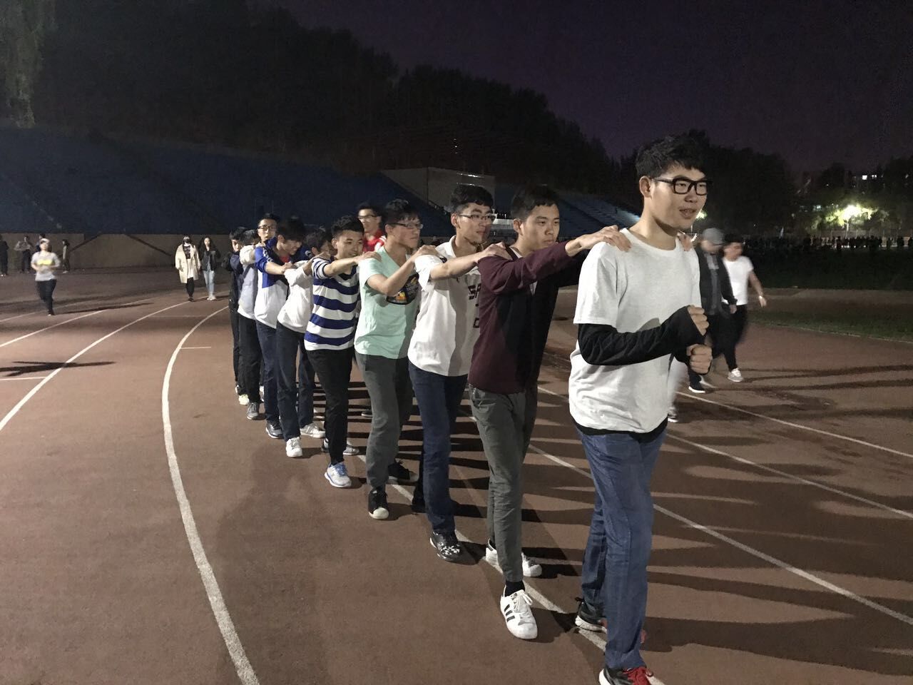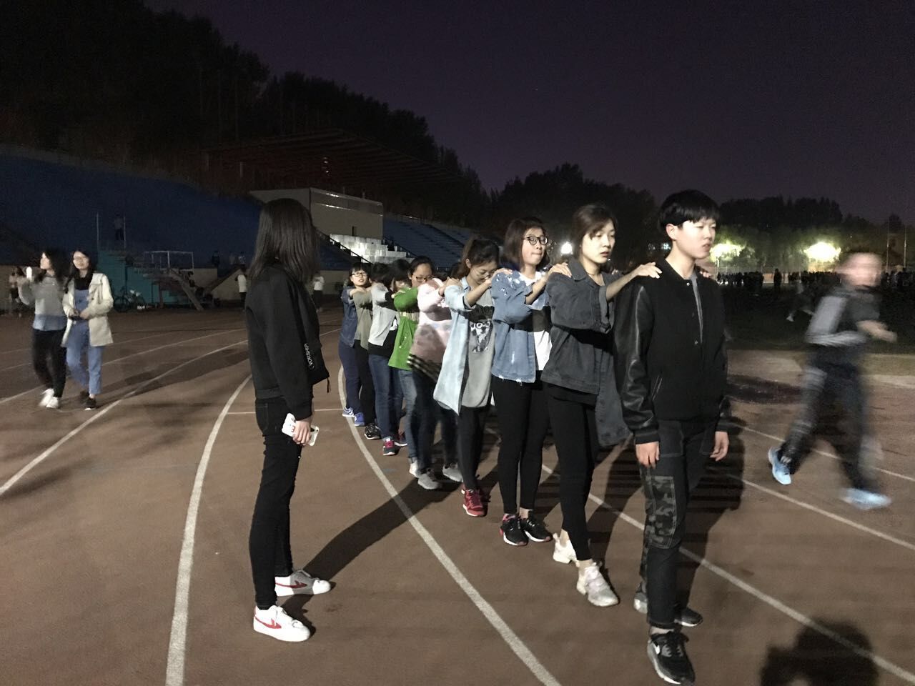 夜幕拉开,运动员们早早地来到了运动场。大家的脸上洋溢着灿烂的笑容,每个人都为训练做好了充足的准备。金博老师也来到了体育场,为大家加油鼓劲。