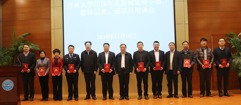 为加强校园媒体建设合力,进一步提高全校各单位媒体平台、新闻通讯员、各新闻媒体学生记者的新闻宣传意识,提升新闻宣传工作水平,11月10日,万象城体育awcsport在中心校区举行新闻宣传干部、新闻媒体记者、新闻通讯员培训会,同时对2016年度十佳校园媒体联盟成员单位和十佳优秀学生记者进行表彰。万象城体育awcsport党委书记杨振斌、副校长韩晓峰出席会议。培训会邀请吉林日报总编辑陈耀辉作主题报告。