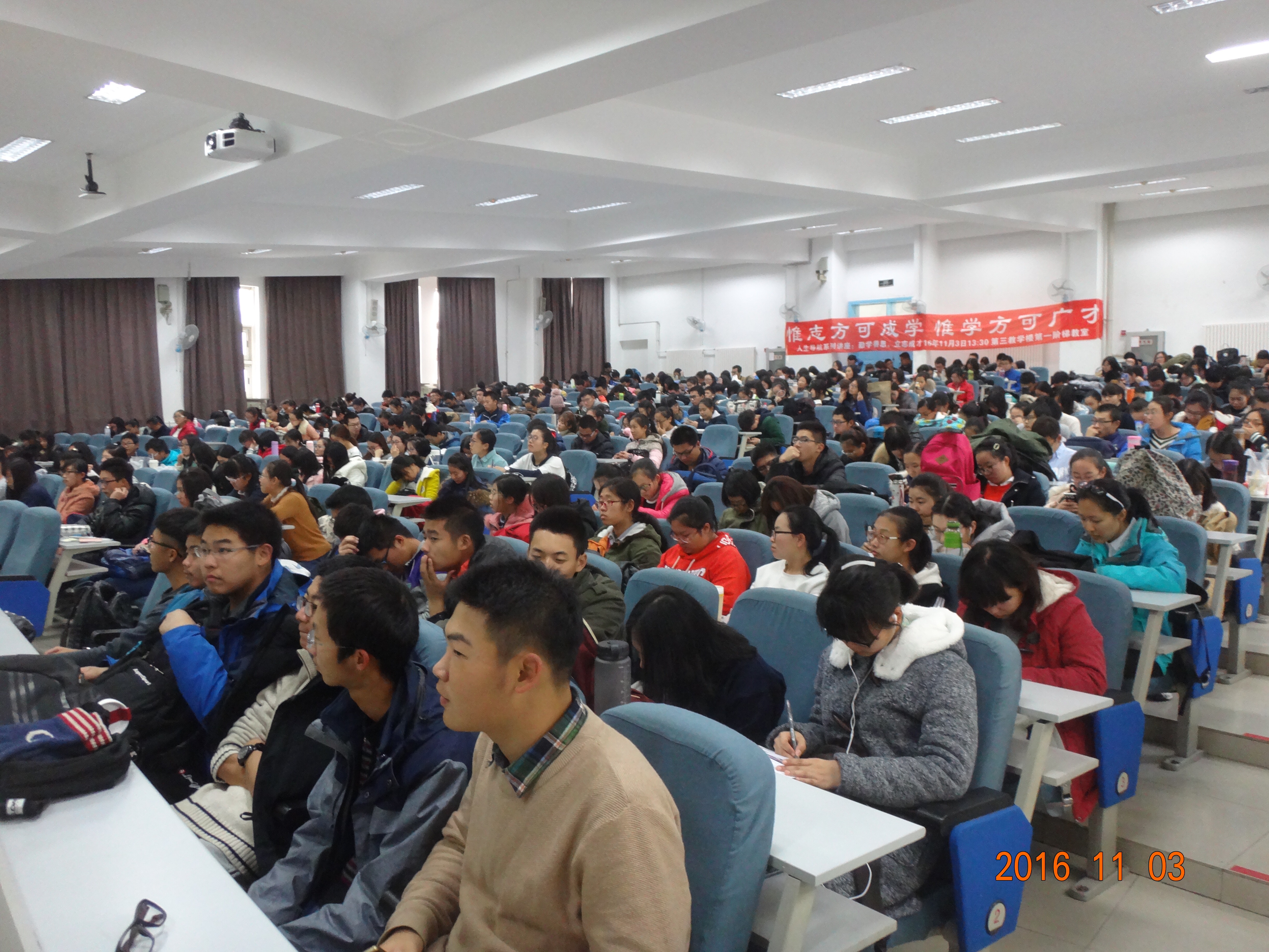 刘院长首先以自己的大学生活为例,从四方面与我们探讨了我们今后可能遇到的问题,并提出了宝贵建议。第一,我们要对大学生活有所规划。所谓规划不是纸上谈兵,而是身体力行,我们可能做不到闻鸡起舞,凿壁取光,但是我们对时间要有清楚地掌握方向。刘院长更是举例向我们说明了大学究竟是什么。美国时代周刊曾发布过:人类在近1000年中发生了什么影响人类进程的大事,其中1088年成立世界第一所大学是人类这1000年最伟大的成就,这说明大学是我们人生必经的无法跨越的重要阶段。第二,努力要趁早。刘院长说道,好的结局一定要有好的开始,作为大一新生的我们要在方方面面努力约束自己,不要“大四方悔读书迟”;勿忘初心,不要因为出发的太久而忘记了为什么出发。第三,刘院长对我们的学习方法提出里几点建议,例如在英语和数学方面要加大自我学习的力度,在理解的层面上,我们要学会死记硬背,这样会更有效率。学一行要爱一行,我们要培养自己的兴趣,不要走学习的极端。在做学问的时候要善于思考,不能孤傲地认为自己的一定是对的,要领悟学习中的包容性,这样我们才有成为治学大家的可能。第四,刘院长强调了我们大学生要培养自己的理想与追求,有梦想,有品德,脚踏实地上好每一门课,充满自信地走向未来的人生道路。