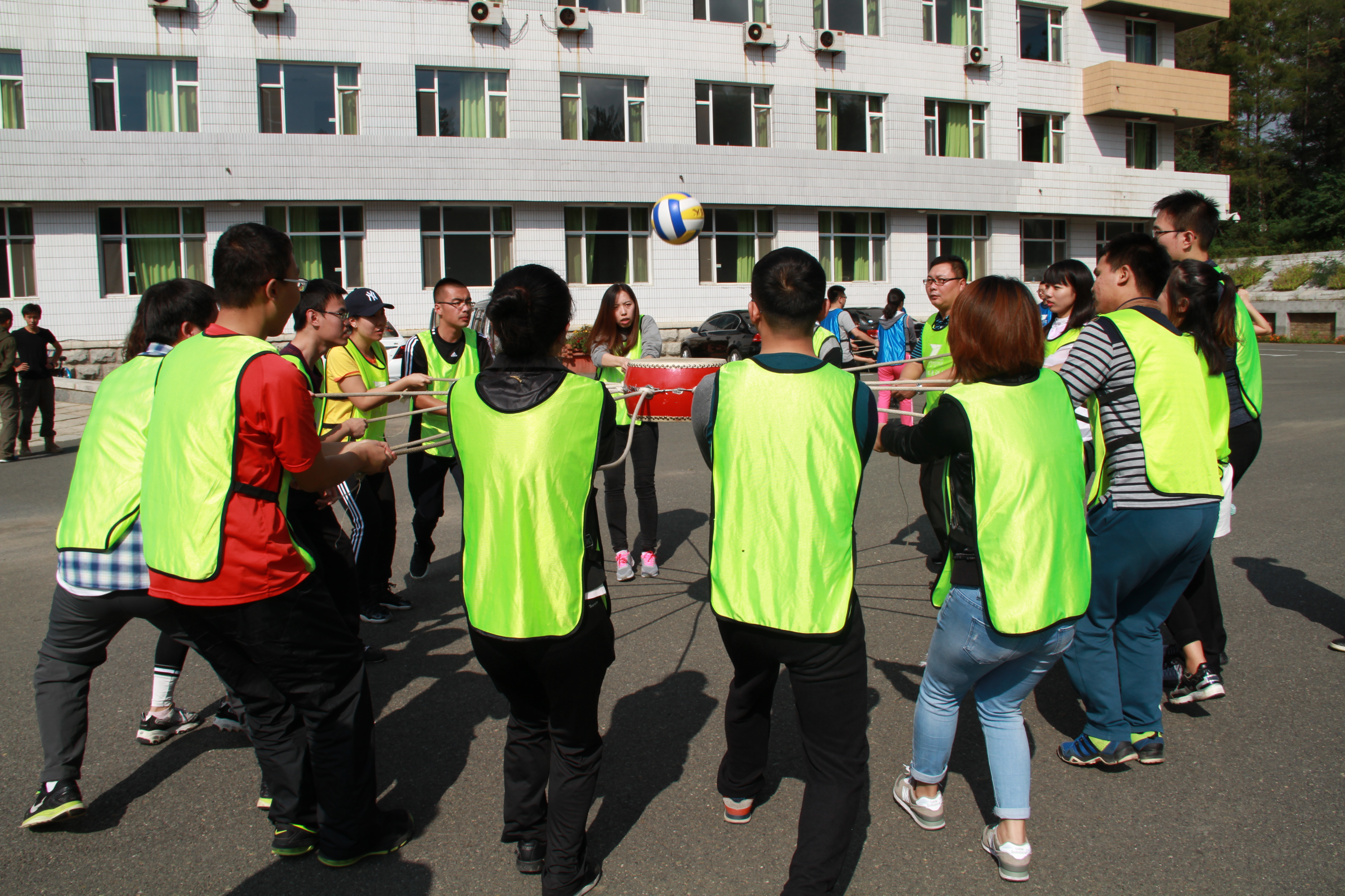 击鼓颠球 所有队员在规定的时间之内利用手中有限的资源,按照培训师的要求完成不同次数的颠球任务。项目中充分体现资源的合理配置,人与人、部门与部门之间的协调、合作与沟通,体会良好的监督机制的重要性,实现精益化管理。