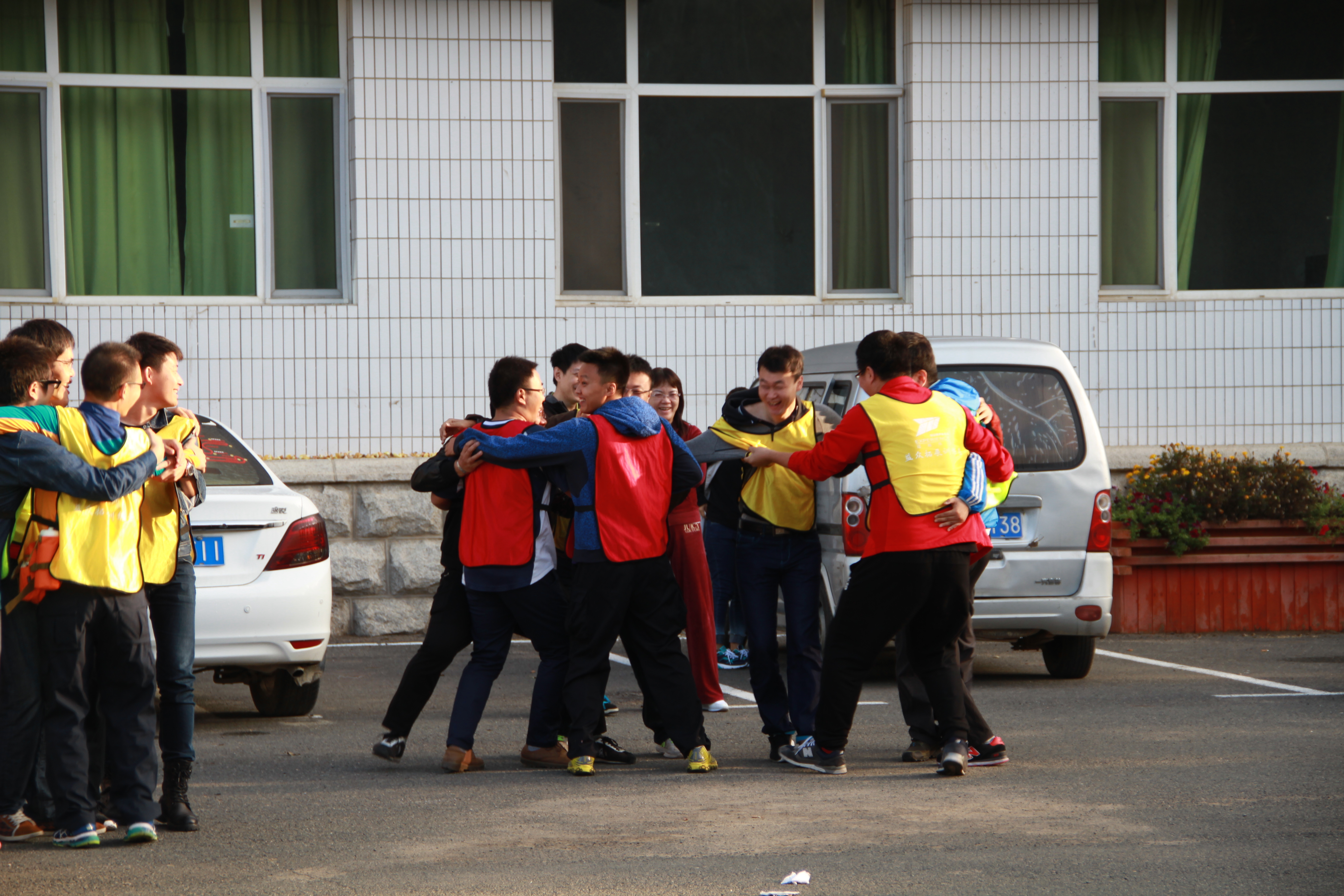 下午3:50在校东门集合,经过40分钟车程到达目的地——新立城水库,益众拓展公司的10位教练着装整齐,恭候大家的到来,进行严格的纪律约束后,开始破冰之旅。通过团队的生成、展示、整合,打破大家之间的隔膜,尽快进入培训情境,使学生体验到一种安全感、归属感。