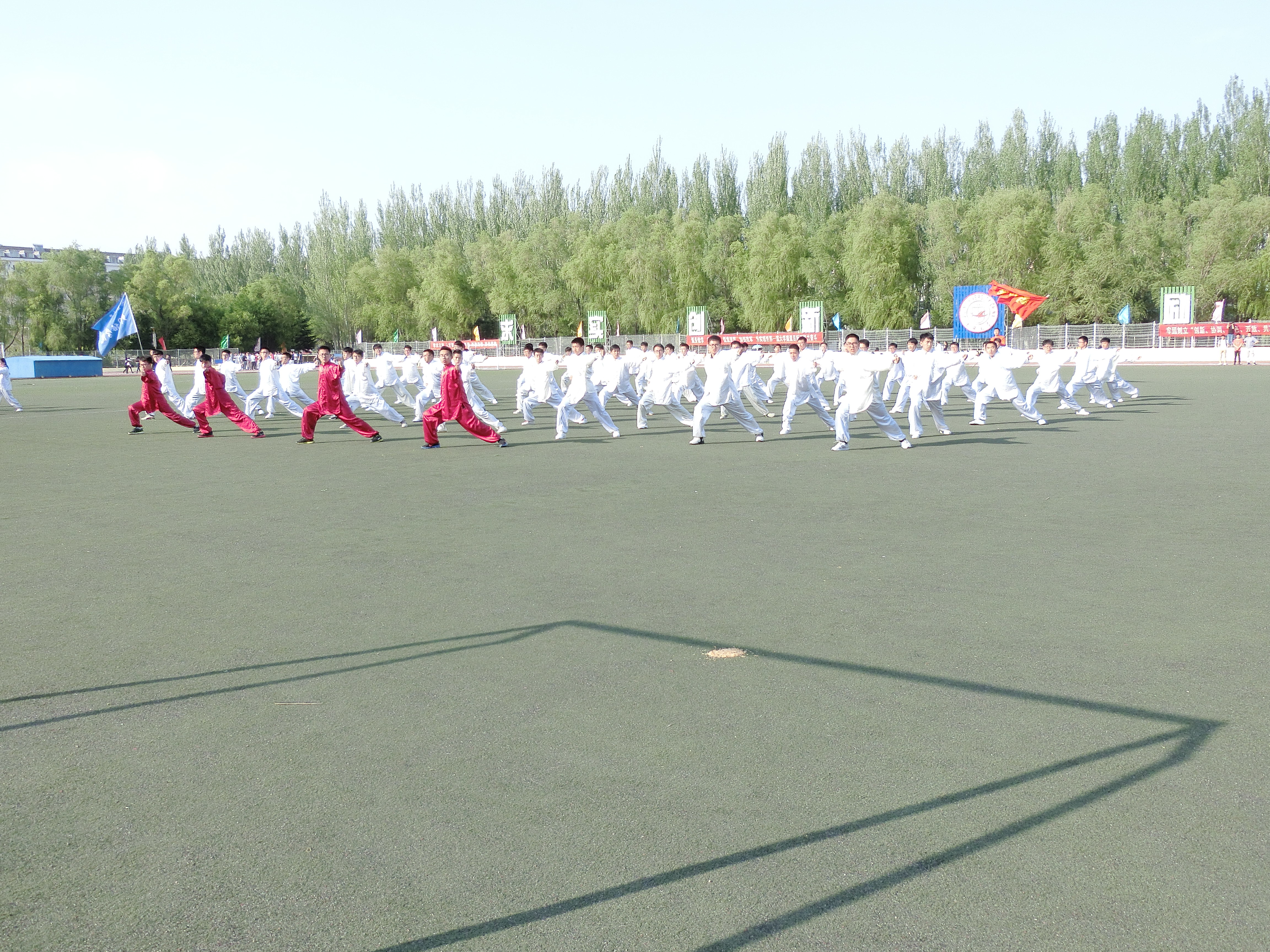比赛结束后,主席台统一安排所有学院的队形以及入场方式,力求在运动会上展示出最好,最精彩的长拳表演,给前来观看的观众最震撼的视觉体验,不让同学们近日来的汗水与努力白费,从而得到最充分的发挥。最后,所有学院队伍一起进行长拳预演,场面宏大,令人屏息。