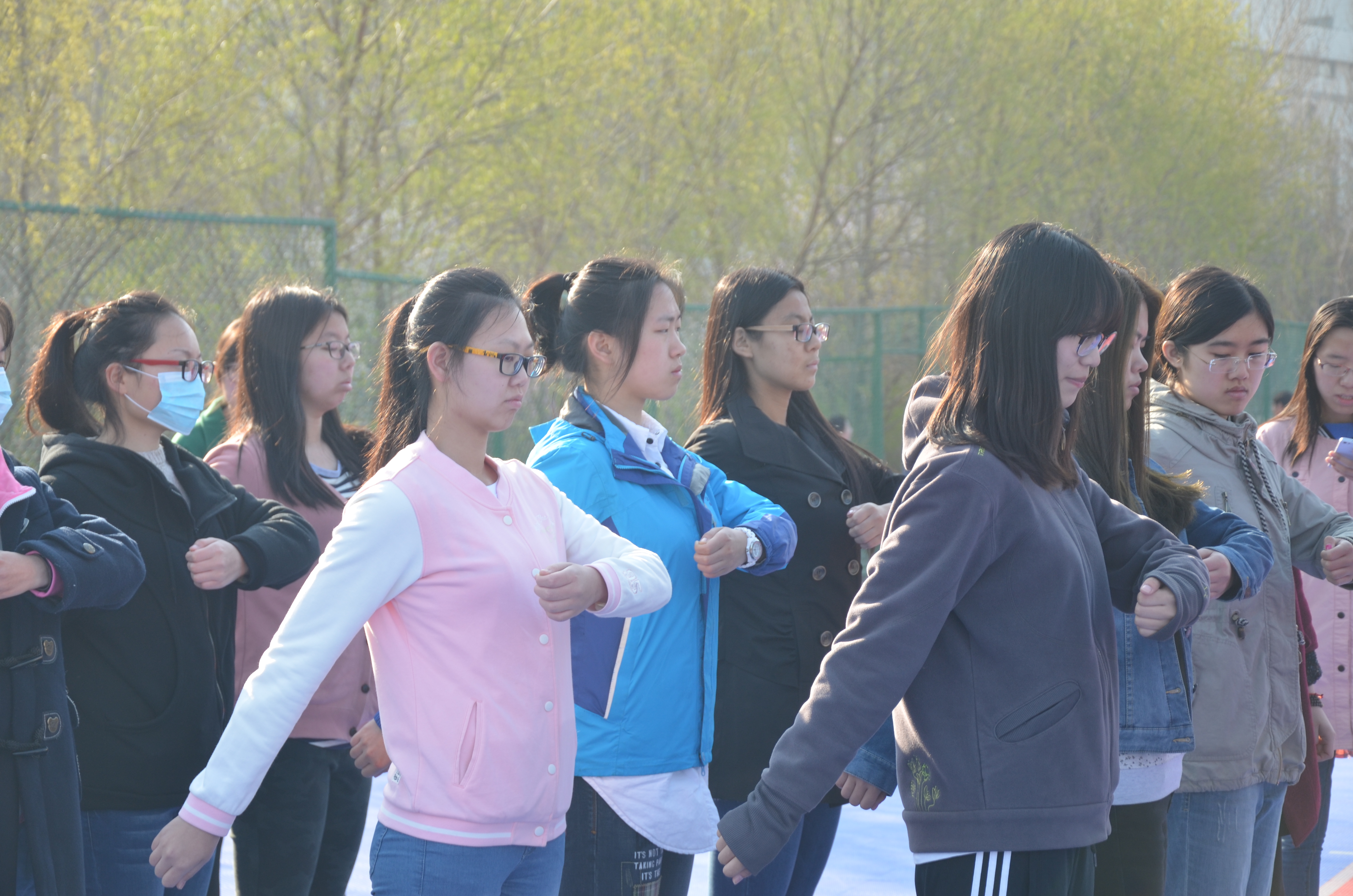 本次方队的训练由13级、14级部分学生干部组织,部分15级的同学们参与训练。在一周的室内训练之后,方队的训练转移到了篮球场进行。每天清晨,都能看到同学们准时集合,整齐地待命。训练开始后,13级、14级同学耐心地讲解和示范标准动作,向同学们传授经验。15级同学们认真聆听他们讲解的动作要领,并一遍又一遍地练习步法和摆臂。本次的方队训练对同学们的要求比较严格,但是同学们毫无怨言,积极地接受训练。为了能达到整齐划一的效果,同学们用心地互相配合,彼此紧密地联系在一起。在训练时,她们表情严肃,步伐整齐;在休息时,她们互相交流动作要领。