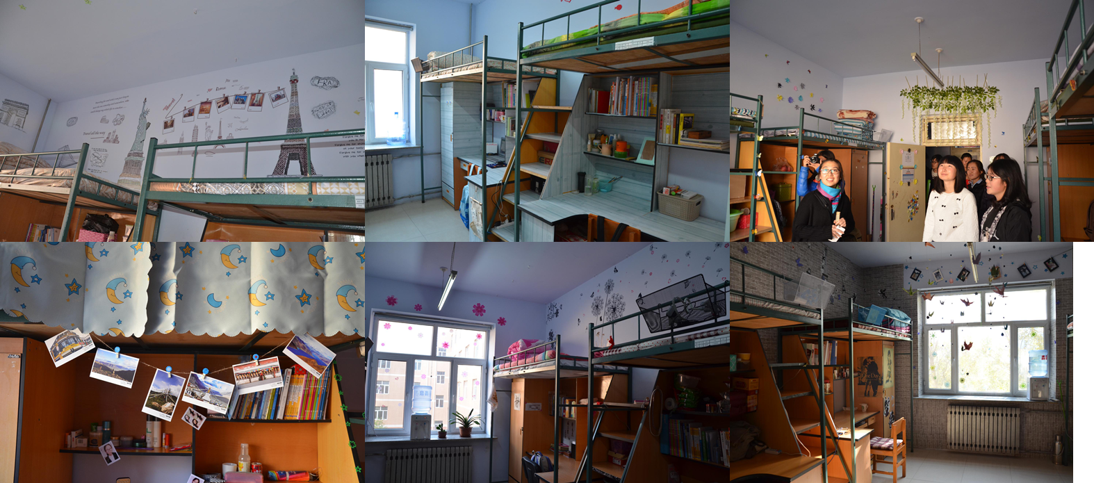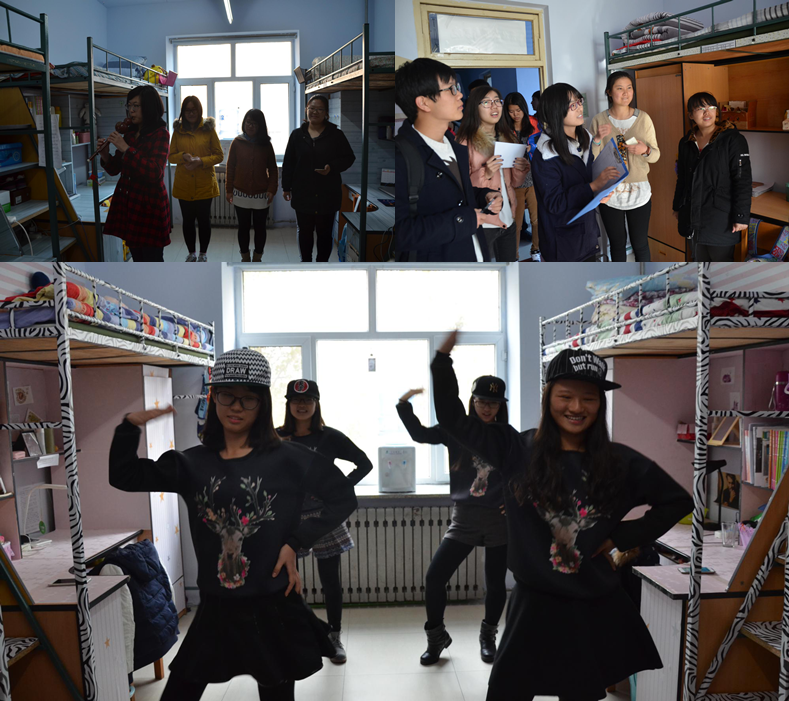 金老师首先检查了女生寝室,第一个寝室3040便使人眼前一亮,复古的壁纸和充满岁月感的摆件烘托出特别的文化气息,墙角摆放的画板在阳光的照应下更是将整个寝室显得温馨而典雅。接下来的验收活动更是惊喜不断,同学们都对本次寝室文化节给予极大的热情,在寝室的装饰上面更是投入了许多的时间与精力。一间间寝室仿佛都变成了同学们的第二个家。每个寝室的主题都各具特色并且富含同学们的感情。同学们精心编排的精品节目,也让在场的金老师和同学们赞不绝口。