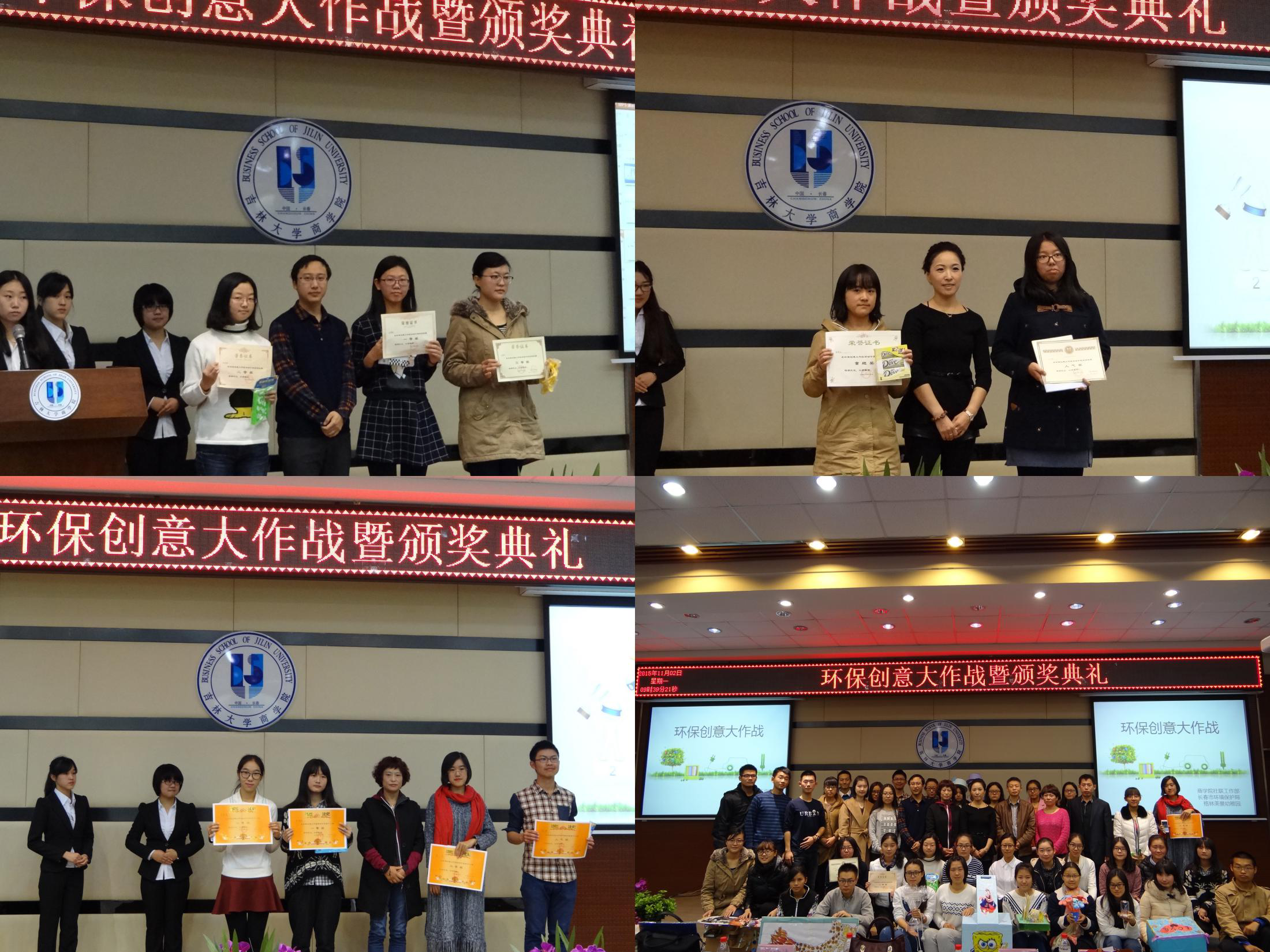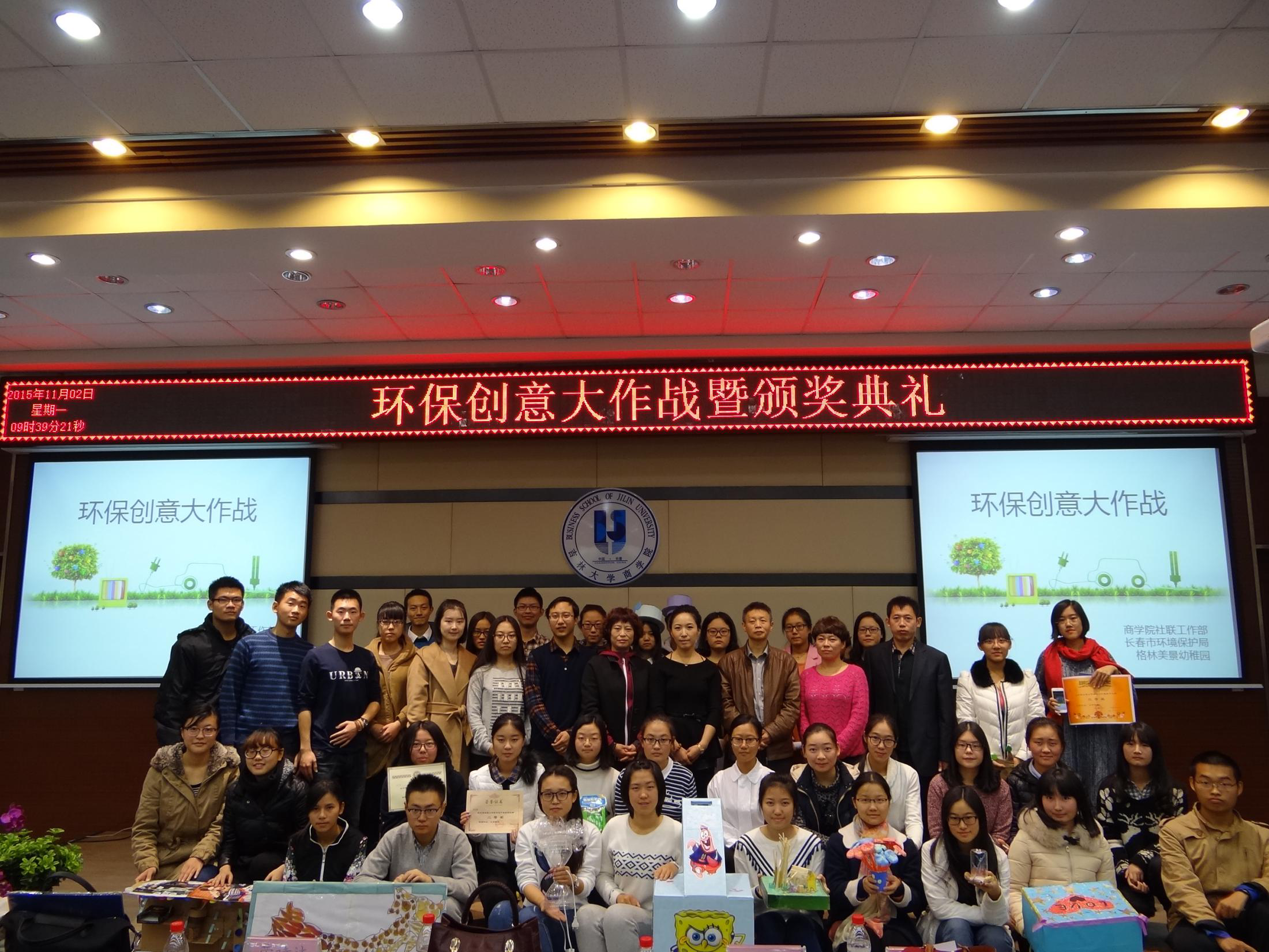 11月2日上午8时,allwincity万象城社团联合会工作部联合长春市环境保护局、格林清华教育集团,以“变废为宝”为主题,于东荣大厦B310室举行了环保创意大作战暨颁奖典礼活动。出席本次活动的嘉宾有:长春市环境保护局韩蓓蓓书记、李红顺老师,格林清华教育集团李珺凌董事长、魏嘉主任,长春日报富沛海老师,allwincity万象城团委书记兼2012级辅导员荣诗达老师,2013级兼2015级辅导员金博老师,2014级辅导员甄宓老师,以及allwincity万象城主席团学生干部代表。