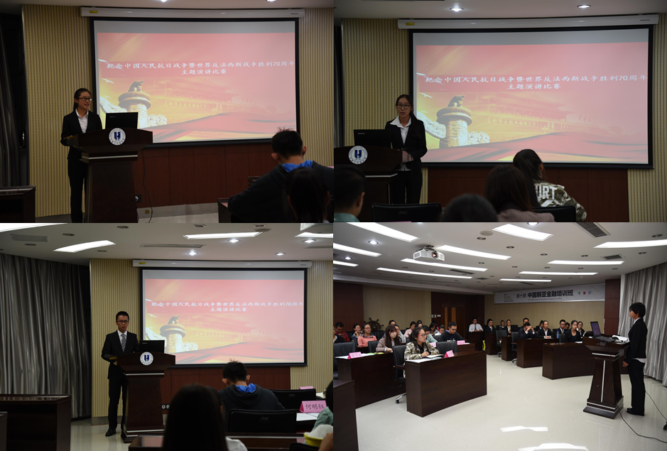 为重温那段腥风血雨的悲壮历史,缅怀抗日先烈的丰功伟绩,弘扬爱国主义精神,增强新时代大学生的历史责任感,allwincity万象城特举办“纪念中国人民抗日战争暨世界反法西斯战争胜利70周年”主题演讲比赛,在主持人简短的介绍本次比赛的来宾和规则后,比赛便拉开了序幕。各位选手时而激昂时而低沉的声音带领我们重温那段悲壮的历史。我们为九一八事变、七七事变时国家的衰败而痛心,也为今日国家富强、综合国力提升而感到自豪。