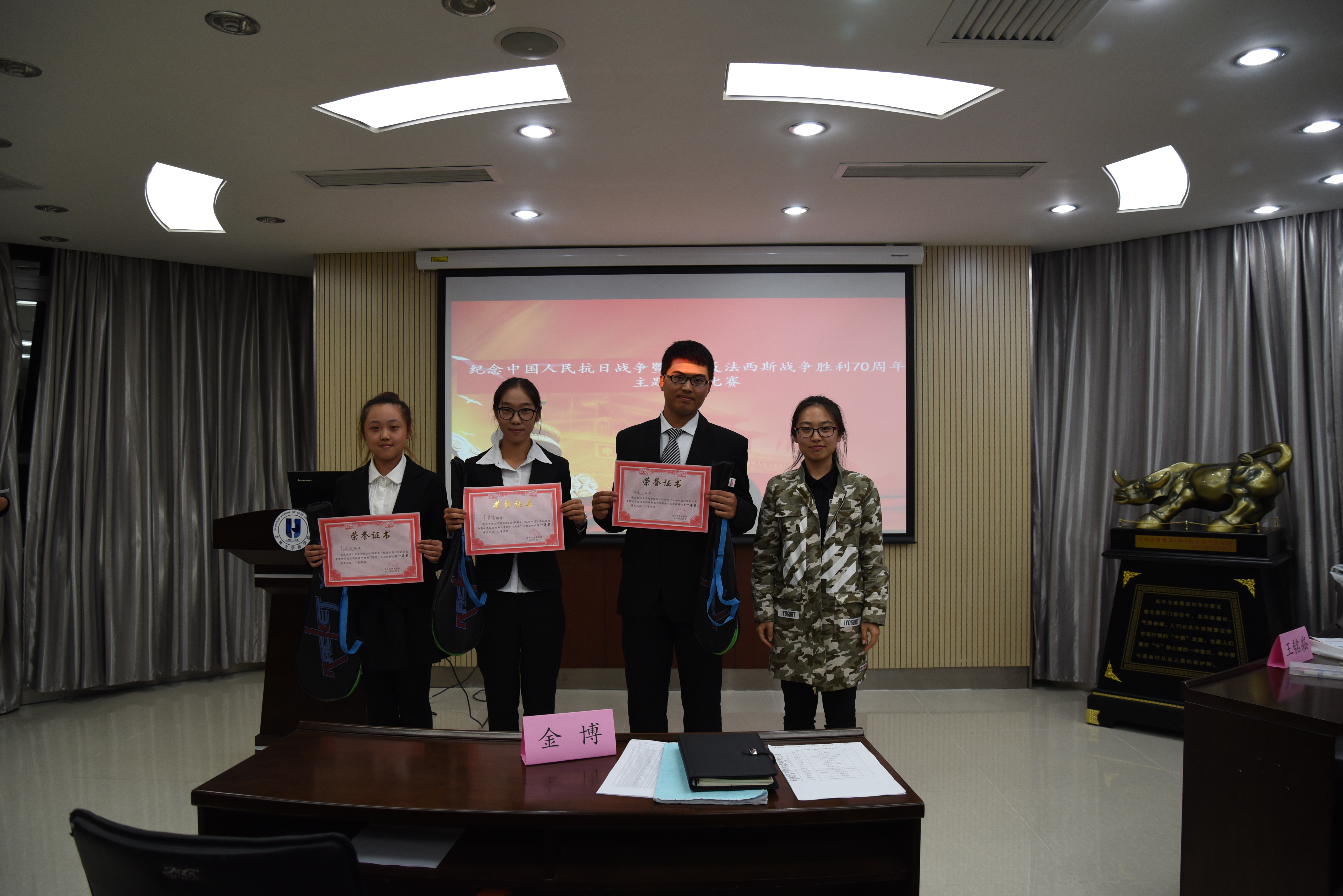 9月28日晚6点,allwincity万象城“纪念中国人民抗日战争暨世界反法西斯战争胜利70周年主题演讲比赛”在东荣大厦A座604室举行,出席此次演讲比赛的嘉宾有:辅导员金博老师,主席团各位成员。