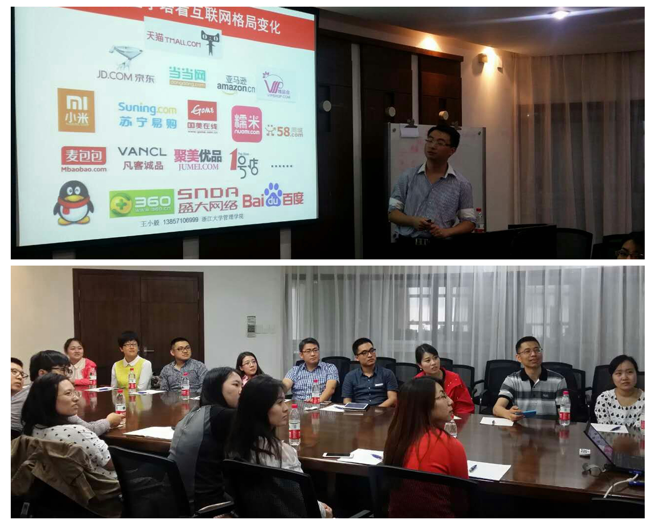 下午王小毅教授讲座的主题是:互联网时代的营销变革。首先,他简单阐述了用户思维、大数据思维、跨界思维、迭代思维、极致思维、简约思维、平台思维、社会化思维、流量思维九种基本的互联网思维。其次,他说明了互联网+理念的四大好处,第一,解决经济下行压力,第二,为传统企业转型升级指引方向,第三,用大众创业带动解决年轻人就业问题,第四,倒逼地方政府的改革举措。在对互联网+进行了宏观阐述之后,王教授从微观层面具体讲解了营销方式。其一,通过收集海量数据,制定用户画像,将数据与之匹配,获得营销精准偏好信息。其二,从销售场景改变说明获得注意力资源的营销模式变革。过去,由于市场上同类竞品数量较少,所以商家倾向制作功能较多产品来获得消费者青睐。而现在,大部分行业处于红海市场,制作极简、功能少产业可以删繁就简,直击用户痛点来获得市场占有率。其三,企业经营要分二步走,第一,做流量,第二,提升转化率,两者不能混在一起同时进行,必须在做足流量后,再进行跟踪,筛选,使流量为企业所用。