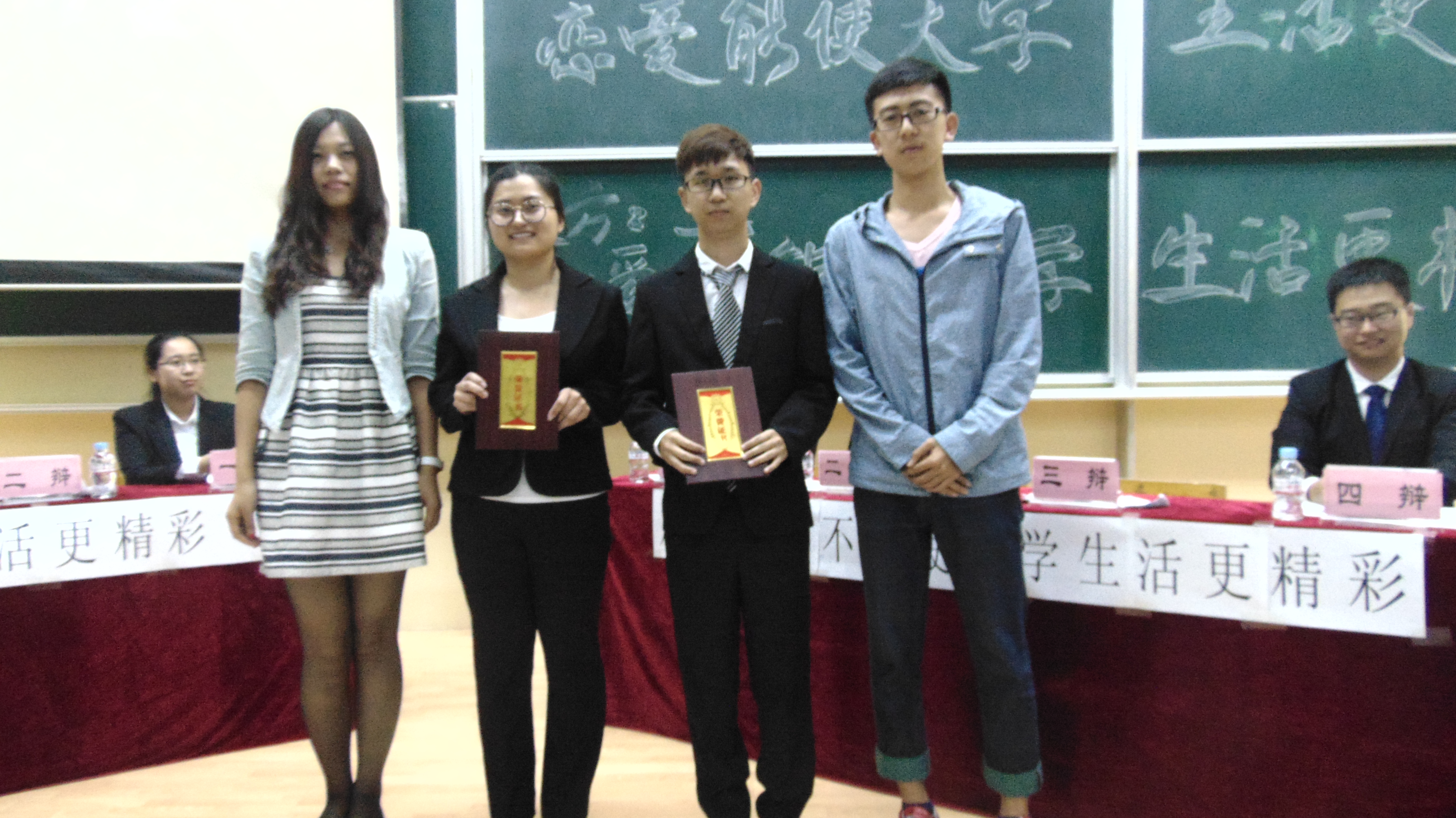 最后由校辩论队成员荆艳同学总结了本次表演赛,她首先对本次精彩的表演赛表示赞赏,而后也提出了其中的瑕疵,然后由学生会主席陈雅慧和团委副书记王铭崧为最佳辩手颁发证书。