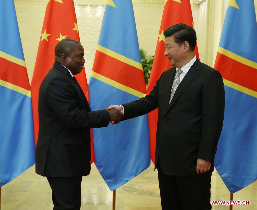 习近平对卡比拉来华出席中国人民抗日战争暨世界反法西斯战争胜利70周年纪念活动表示高度赞赏,强调这体现了刚果民主共和国人民对中国人民的友好情谊,也向世界展示了刚果民主共和国维护和平的坚定信念。习近平指出,中方始终从战略高度和长远角度看待和发展中刚关系,愿同刚方一道努力,全面深化两国互利友好合作,发展合作共赢的战略伙伴关系。中方鼓励和支持两国地方政府、青年、媒体、高校等开展交流,深化两国人文合作。