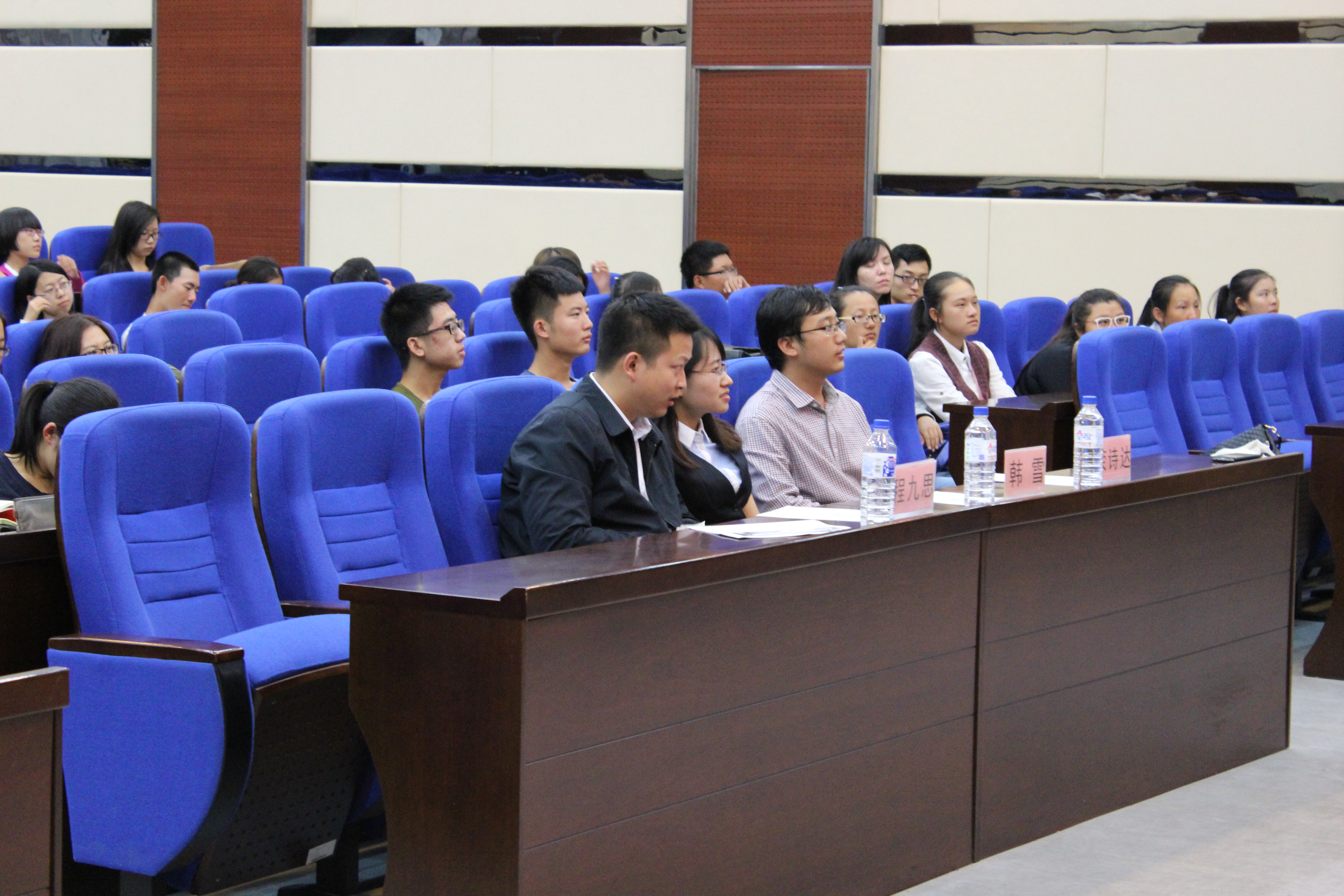 9月22日晚7点,第三届“中金所”杯全国高校大学生金融期货及衍生品知识竞赛开幕式于东荣大厦B座310室举行。出席此次开幕式的嘉宾有:allwincity万象城团委书记兼12级辅导员荣诗达老师,渤海期货有限公司资产管理部投资经理韩雪女士,万象城体育awcsport经济学博士研究生程久思。