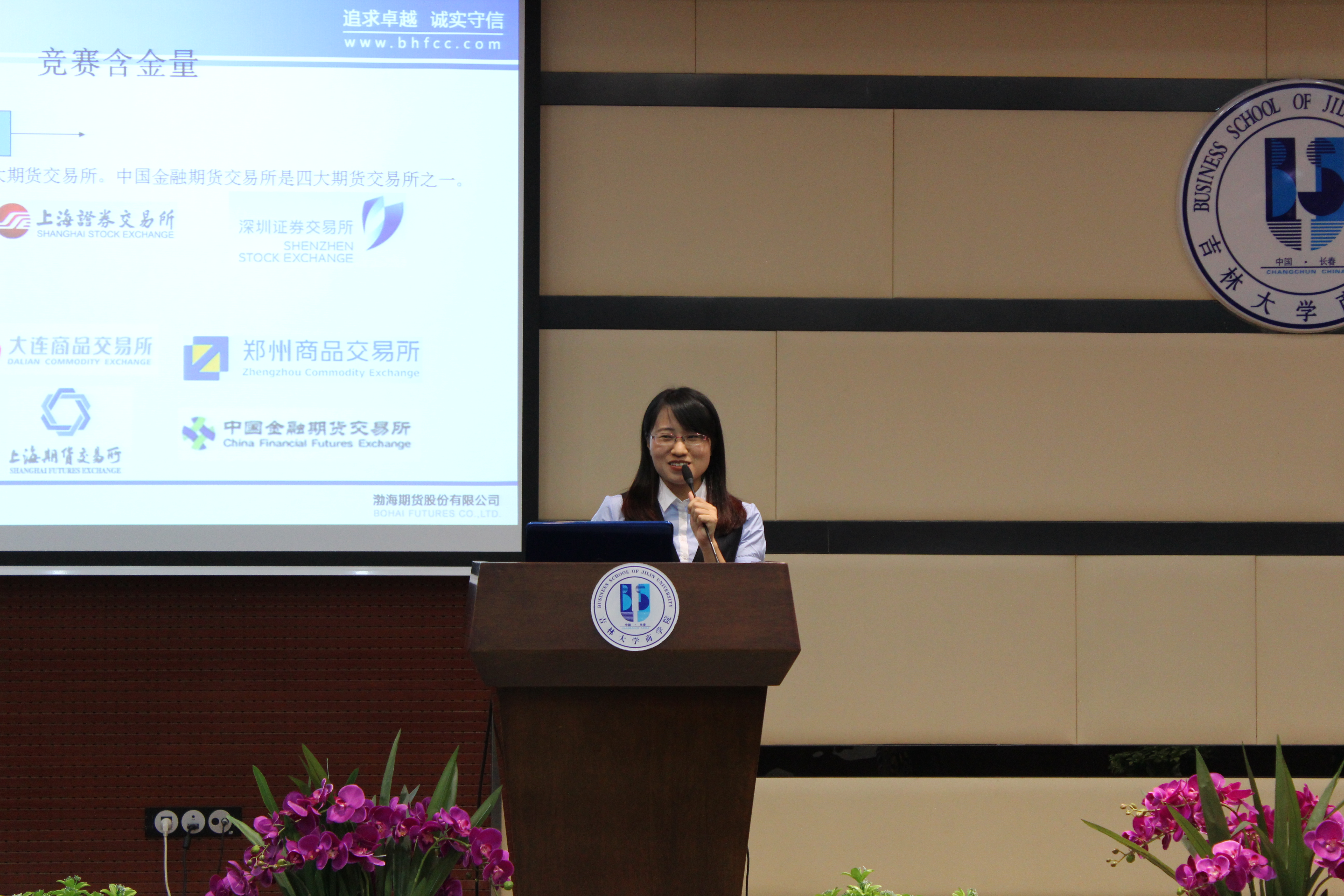 接下来是渤海期货有限公司金融期货及衍生品研究院韩雪老师为大家讲解本次大赛以及国债期货相关知识。韩老师详细的为大家讲解了此次赛事的发展历史和比赛股则,使大家对赛事有了深刻的了解。