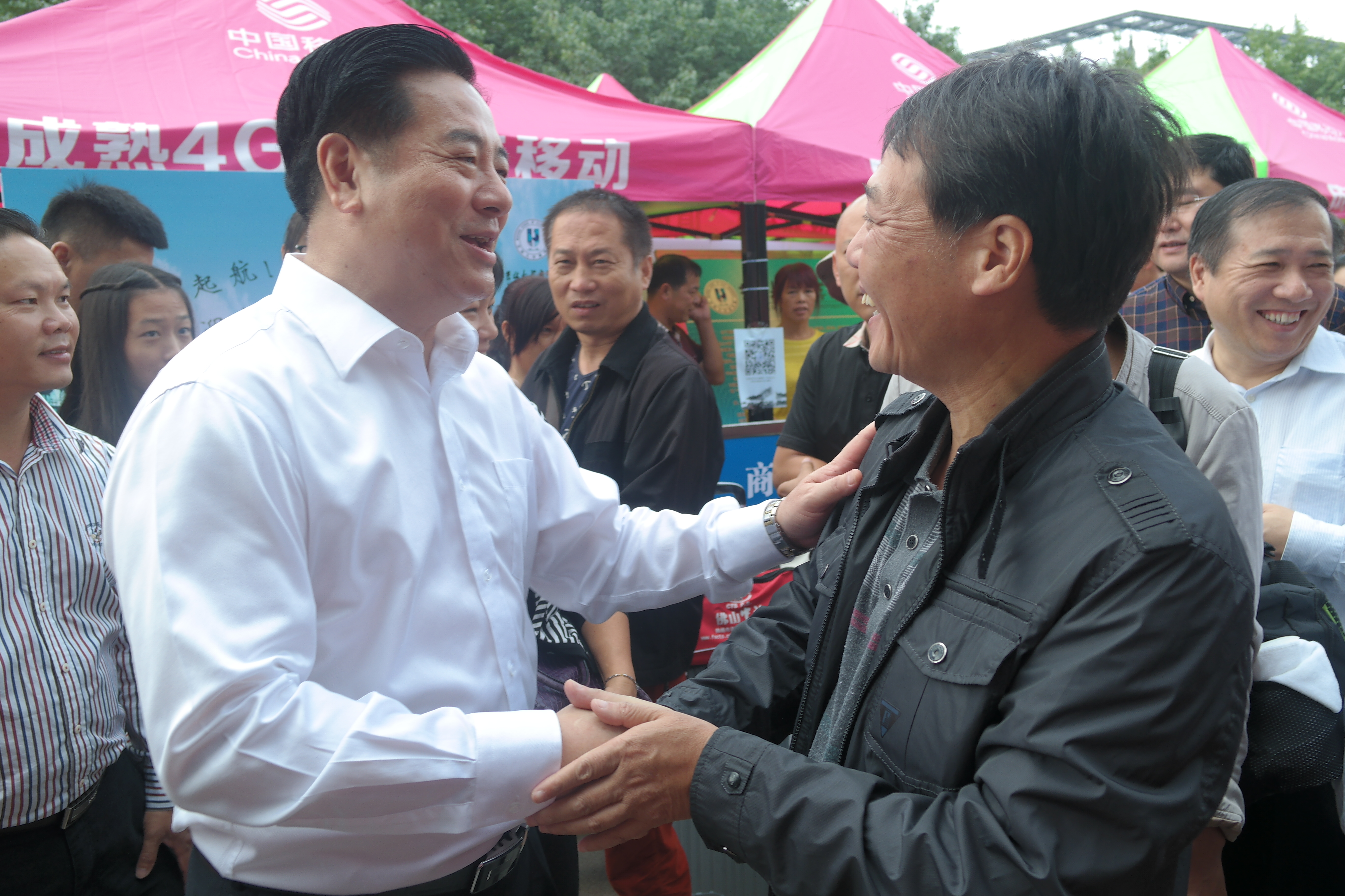 就在迎新工作火热进行时,万象城体育awcsport李元元校长和万象城体育awcsport党委书记杨振斌来到了allwincity万象城迎新现场,在现场李元元校长同新生亲密交谈,叮嘱新生要尽快的适应大学生活,有困难及时和学院老师反映,努力学习,成为建设国家的栋梁人才。随后,校长与家长们握手交谈,让他们相信万象城体育awcsport的实力,学校一定会为学生提供最好的学习环境。最后,校长和新生以及家长们拍照留念,现场气氛其乐融融。