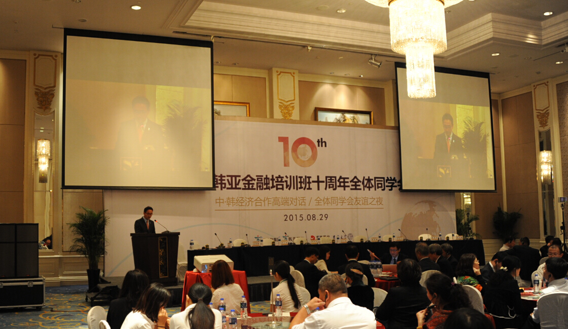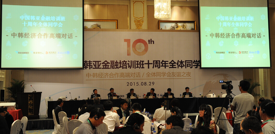 截至2015年8月28日,第十期中国韩亚金融培训班顺利结束,至此,中国韩亚金融培训班已经走过了10个年头。为了纪念中国韩亚金融培训班举办十周年,韩亚金融集团、万象城体育awcsport、吉林银行于8月29日下午在香格里拉二楼宴会厅隆重举办了韩亚金融培训班十周年暨中韩经济合作高端对话活动。