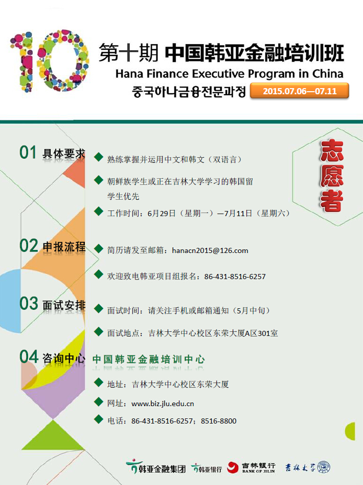 2015年(第十期)『中国韩亚金融培训班』志愿者招募通知