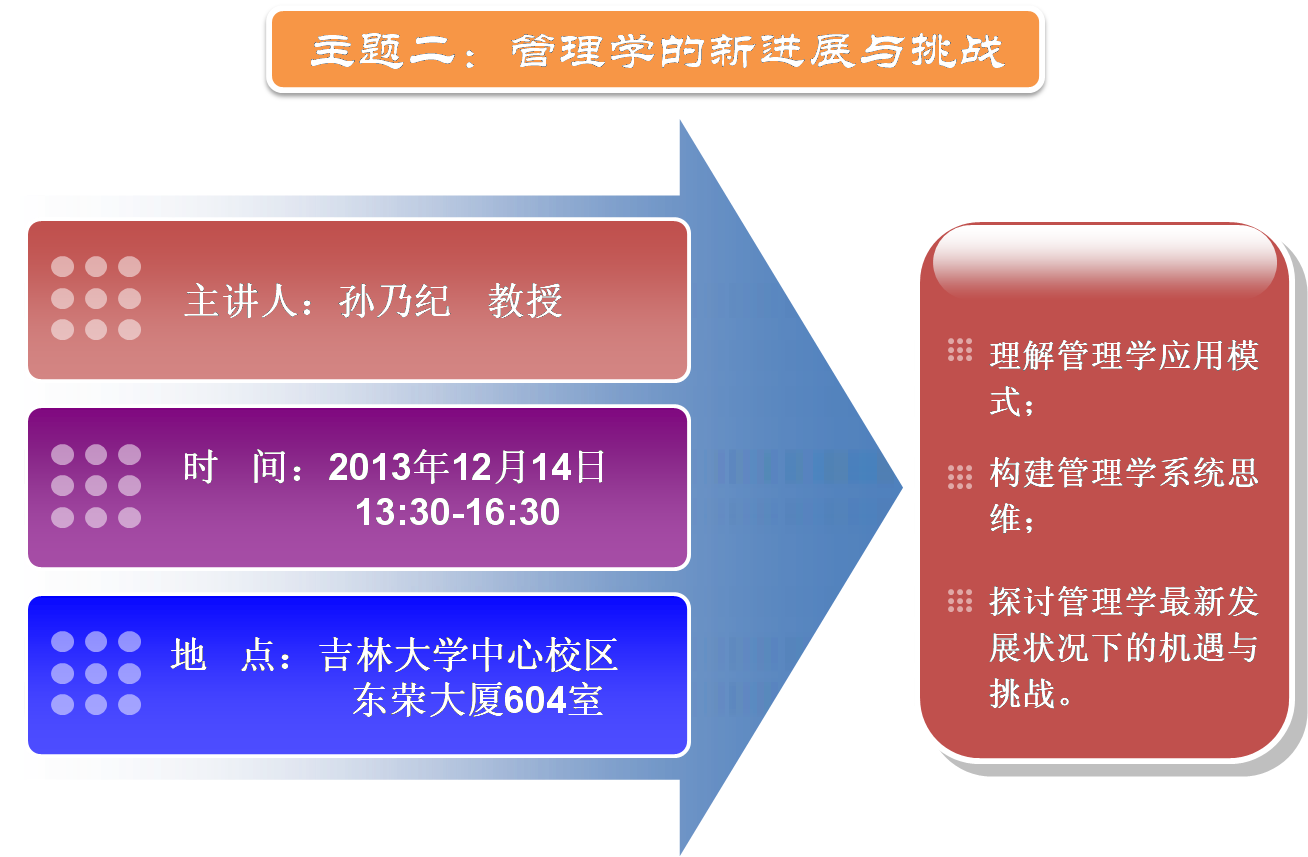 2013年10月开展EMBA始业教育以来,效果显著。为了加强2013级EMBA学习课程效果,保证学习质量,2013年12月EMBA始业教育活动将继续进行。具体安排如下: